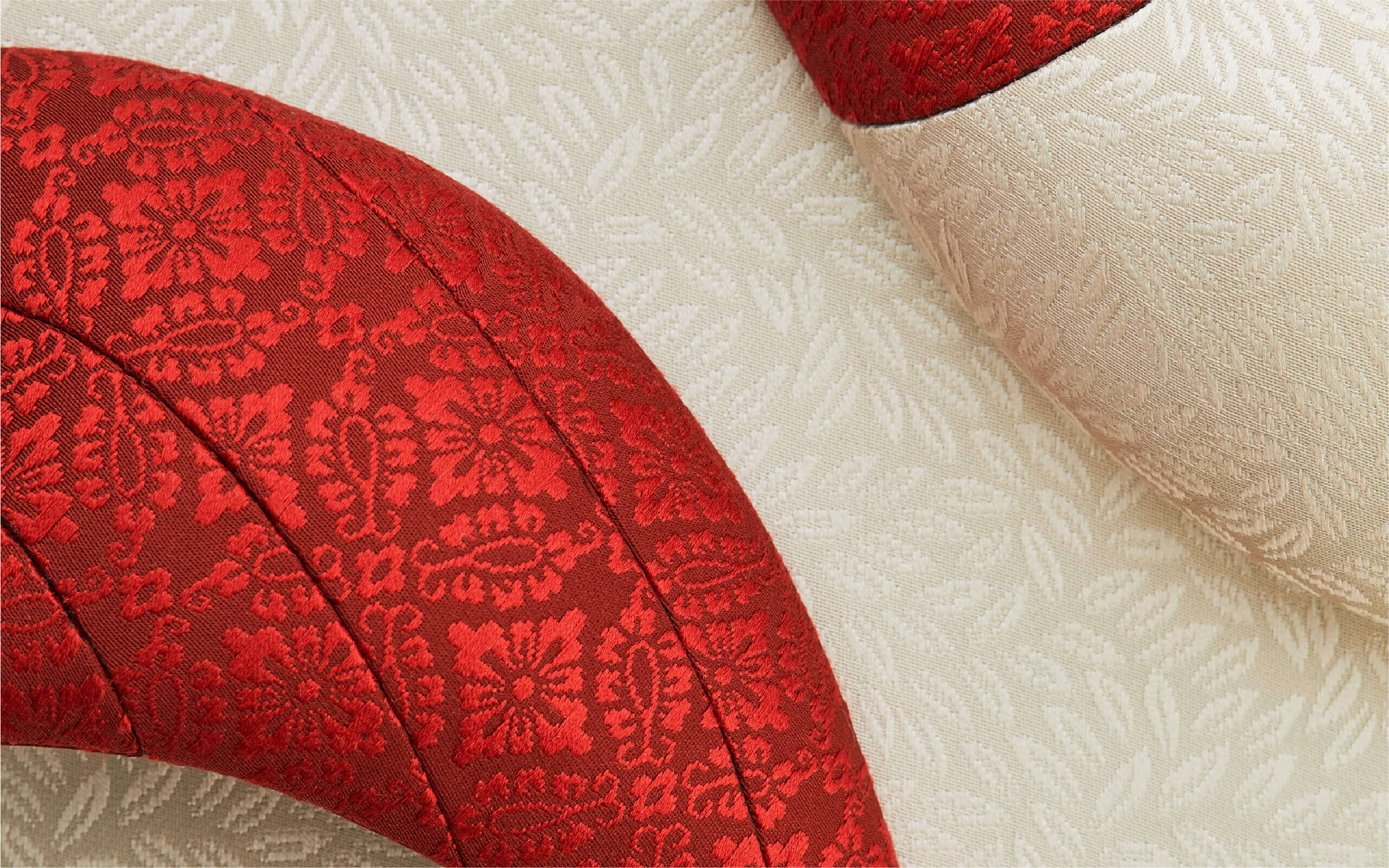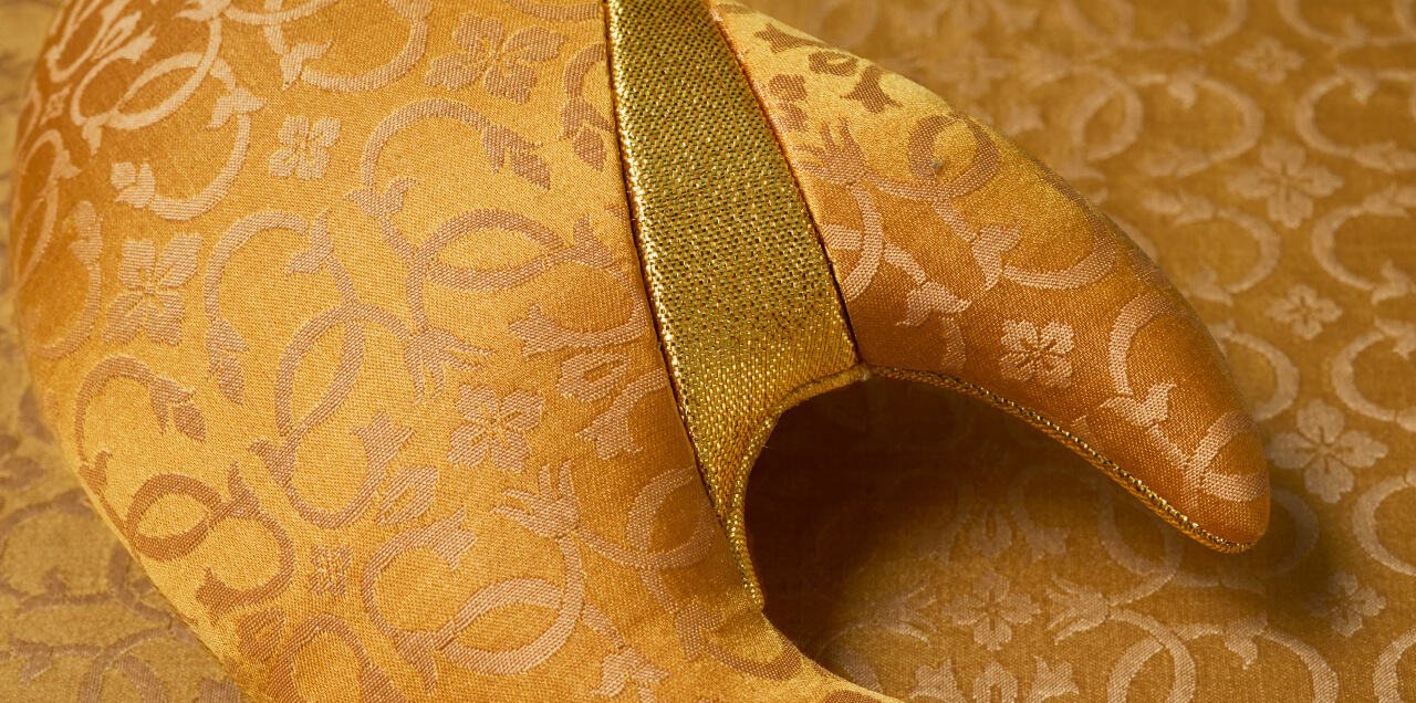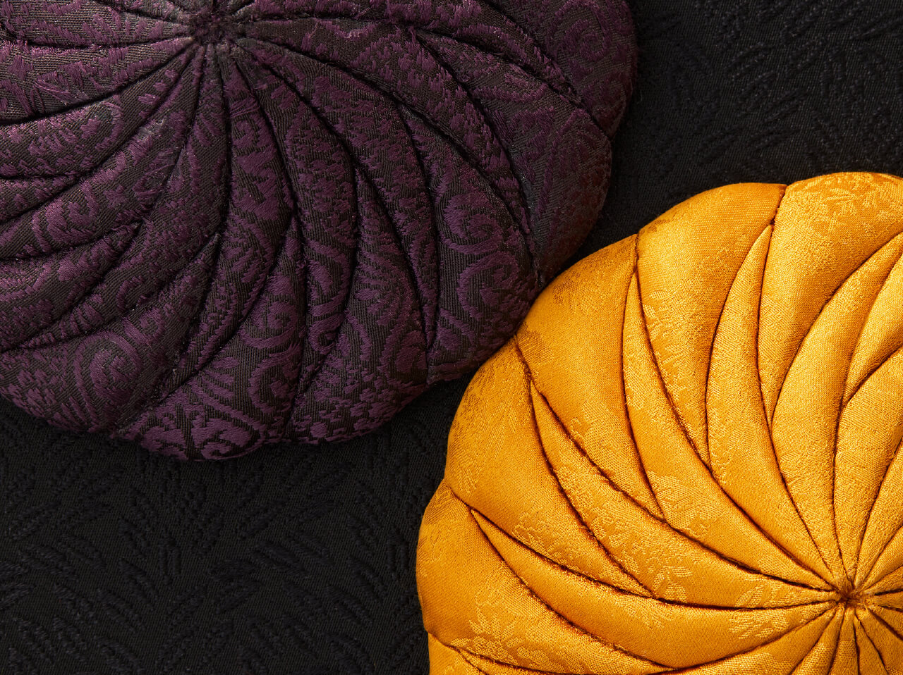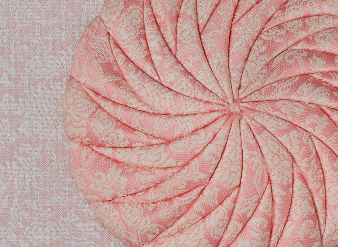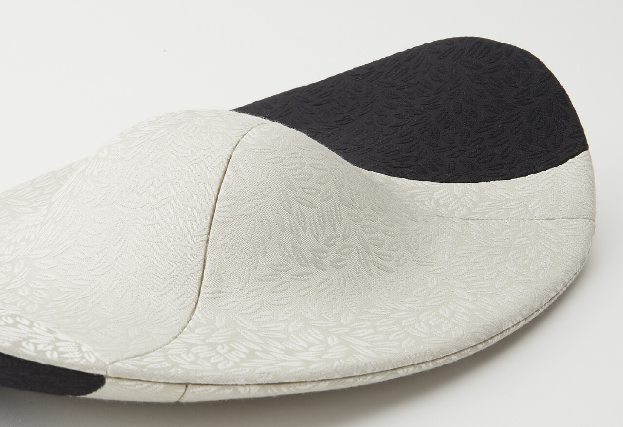 永遠、もしくは長い月日を意味する言葉「八千代」日本的な柔らかな菊の形をモチーフに連続性のある形から永遠に続いてゆく生命をイメージしています。オートクチュールでは無地か小さな柄の生地をお勧めいたします。差し色で明るい色を足したり、交互に縞模様など、お客様のお好みや御召し物にあわせて様々な組み合わせが生み出せます。冠婚葬祭からパーティーなどまで、和装、洋装問わず合わせやすいデザインです。